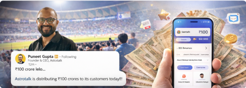 In the world of digital apps and online platforms, promotional campaigns have become a powerful way to attract users. Recently, the Indian astrology platform Astro talk started trending on social media after a viral post suggested that the company might distribute ₹100 crore to its users. This announcement quickly caught the attention of millions of people online.